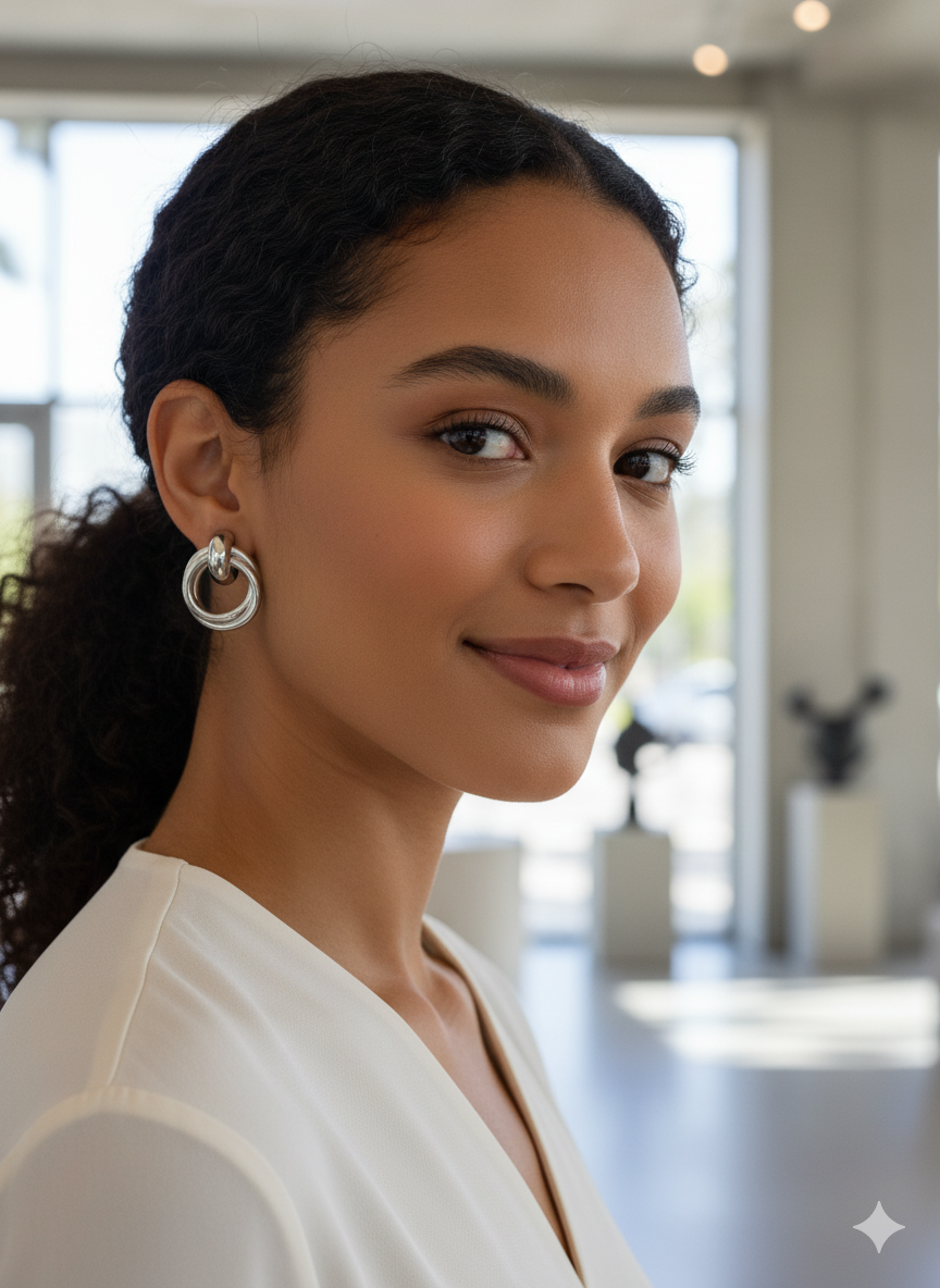 Transforme seu visual com o Brinco Argola Dupla de Prata Beatriz, uma peça que une sofisticação e personalidade em um design moderno e impactante. Com duas argolas entrelaçadas e acabamento espelhado de alto brilho, este acessório é a escolha ideal para quem deseja se destacar com estilo.