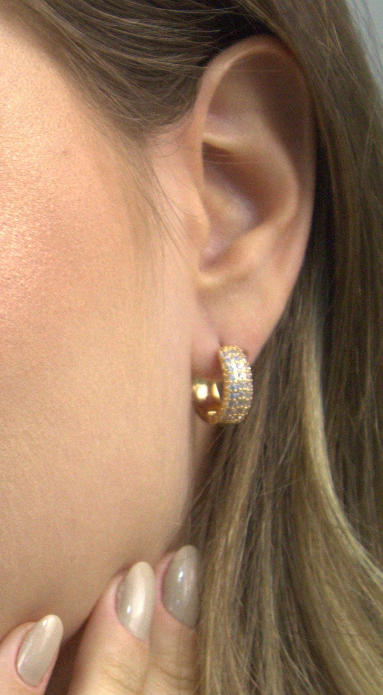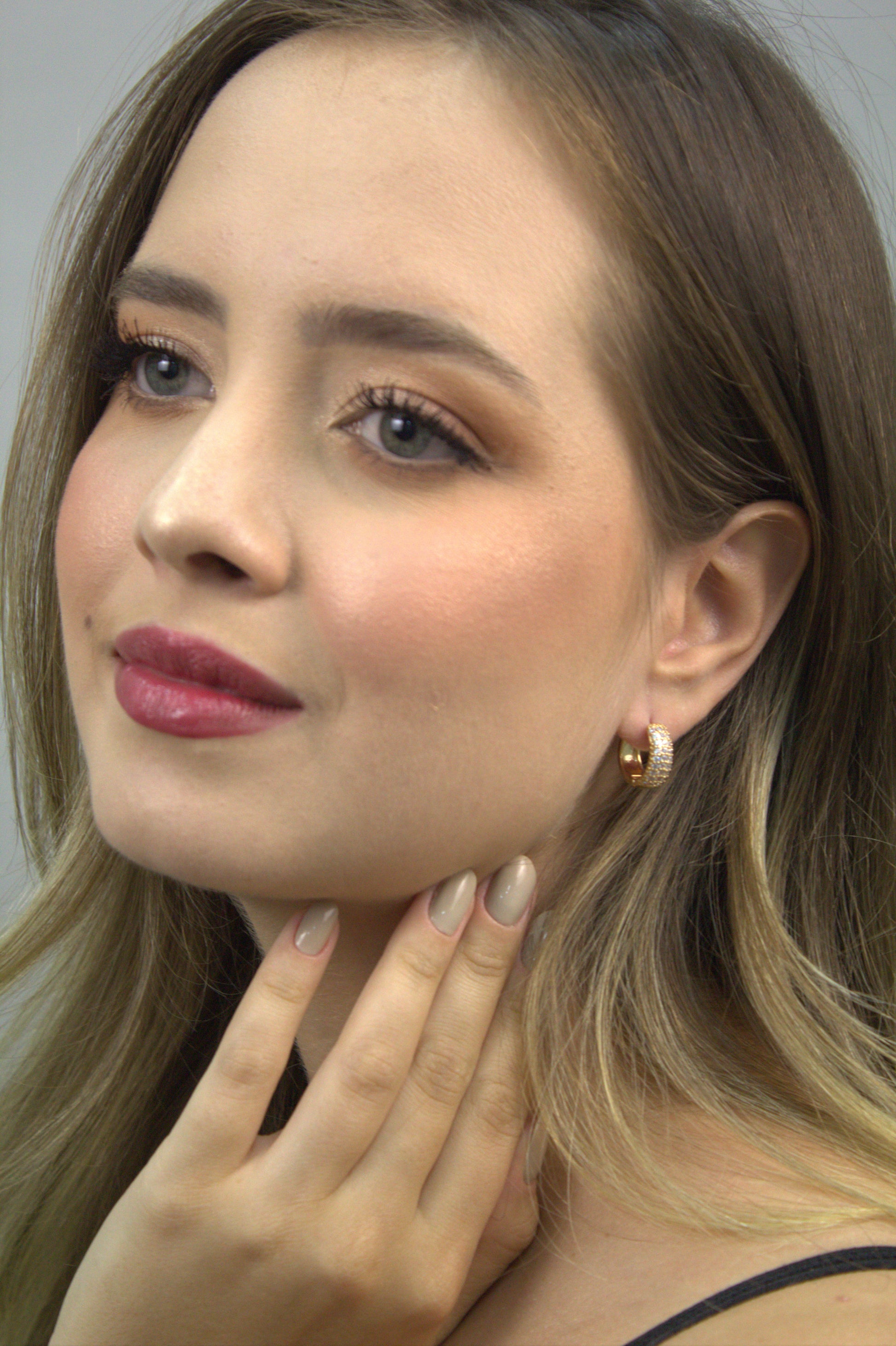 Delicadeza que brilha em cada detalhe. Este brinco argola é folheado a ouro 18K e cravejado com mini zircônias que oferecem um brilho sutil e sofisticado. Leve, charmoso e atemporal, é perfeito para realçar a beleza com elegância em qualquer ocasião. Ideal para quem valoriza joias versáteis com acabamento refinado.