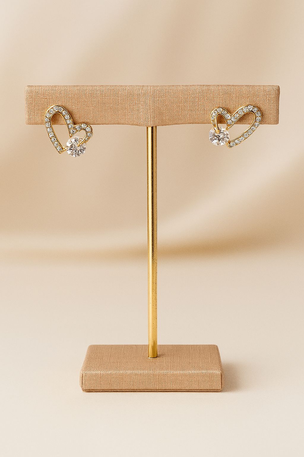 Cheio de brilho, o Brinco Folheado a Ouro 18K Coração com Zircônias é a escolha ideal para quem ama delicadeza com um toque de glamour e romantismo. Seu design em formato de coração é cravejado com micro zircônias cintilantes e finalizado com uma zircônia redonda, adicionando ainda mais sofisticação à peça.
