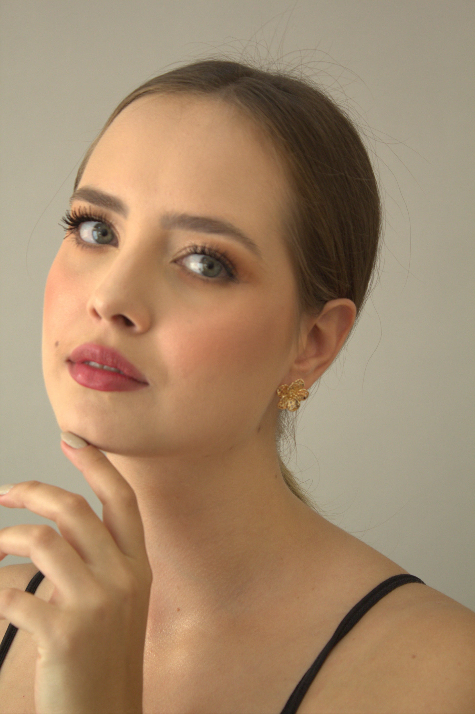 Este brinco folheado a ouro 18k traz um delicado design em formato de flor, com detalhes cuidadosamente esculpidos para realçar suas formas. Seu acabamento polido intensifica o brilho do ouro, criando um efeito sofisticado e harmonioso. Leve e confortável, essa peça adiciona um toque especial ao visual e pode ser usada sozinha ou combinada com outros acessórios.