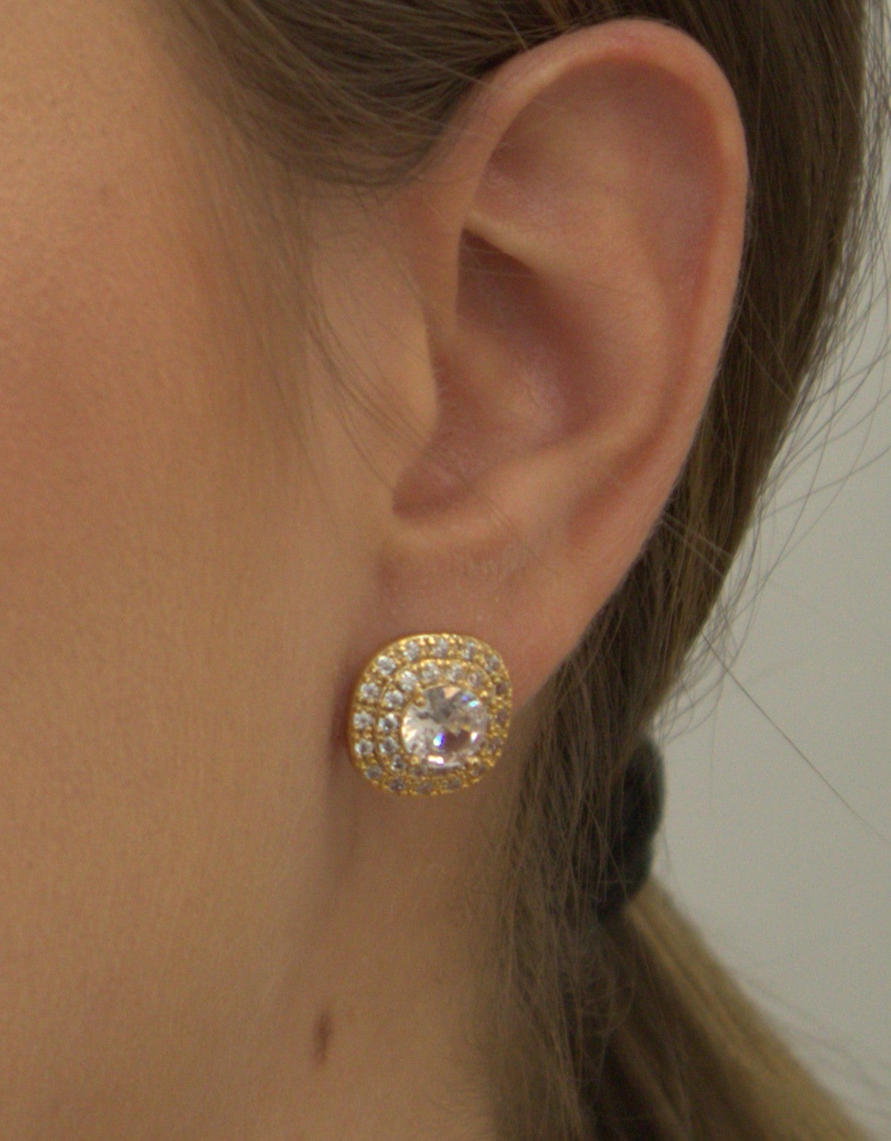 Brinco Folheado a Ouro 18k com Zircônia Central e Cravação de Zircônias