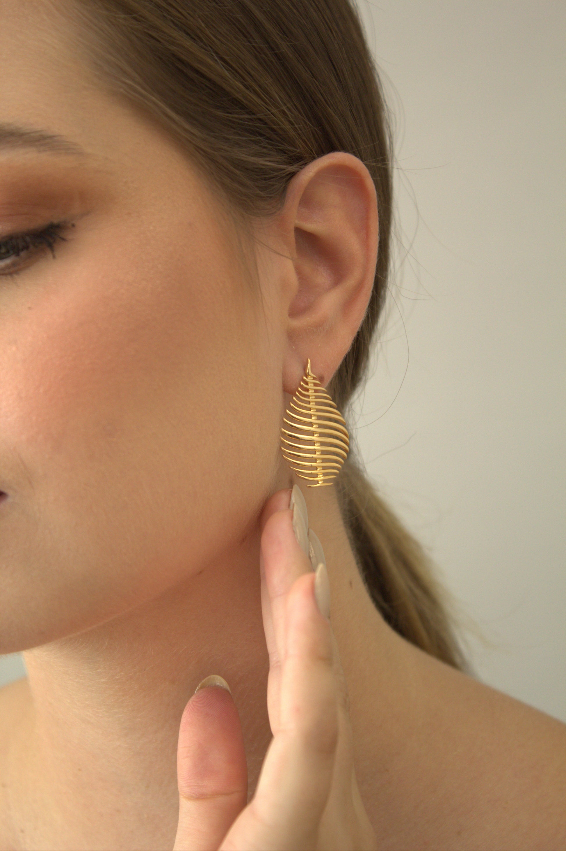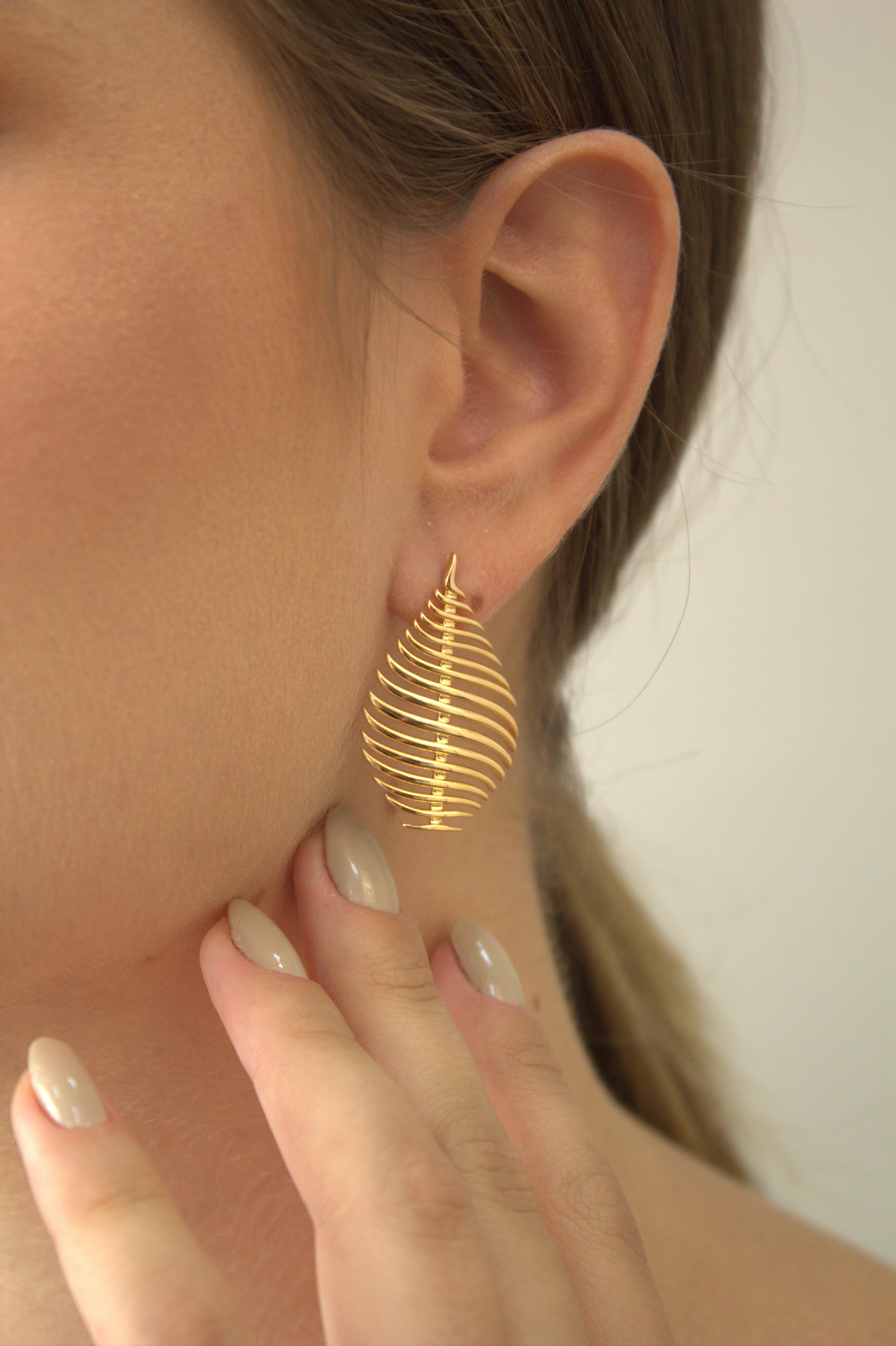 Brinco Folheado a Ouro 18k em Formato Folha Vazada