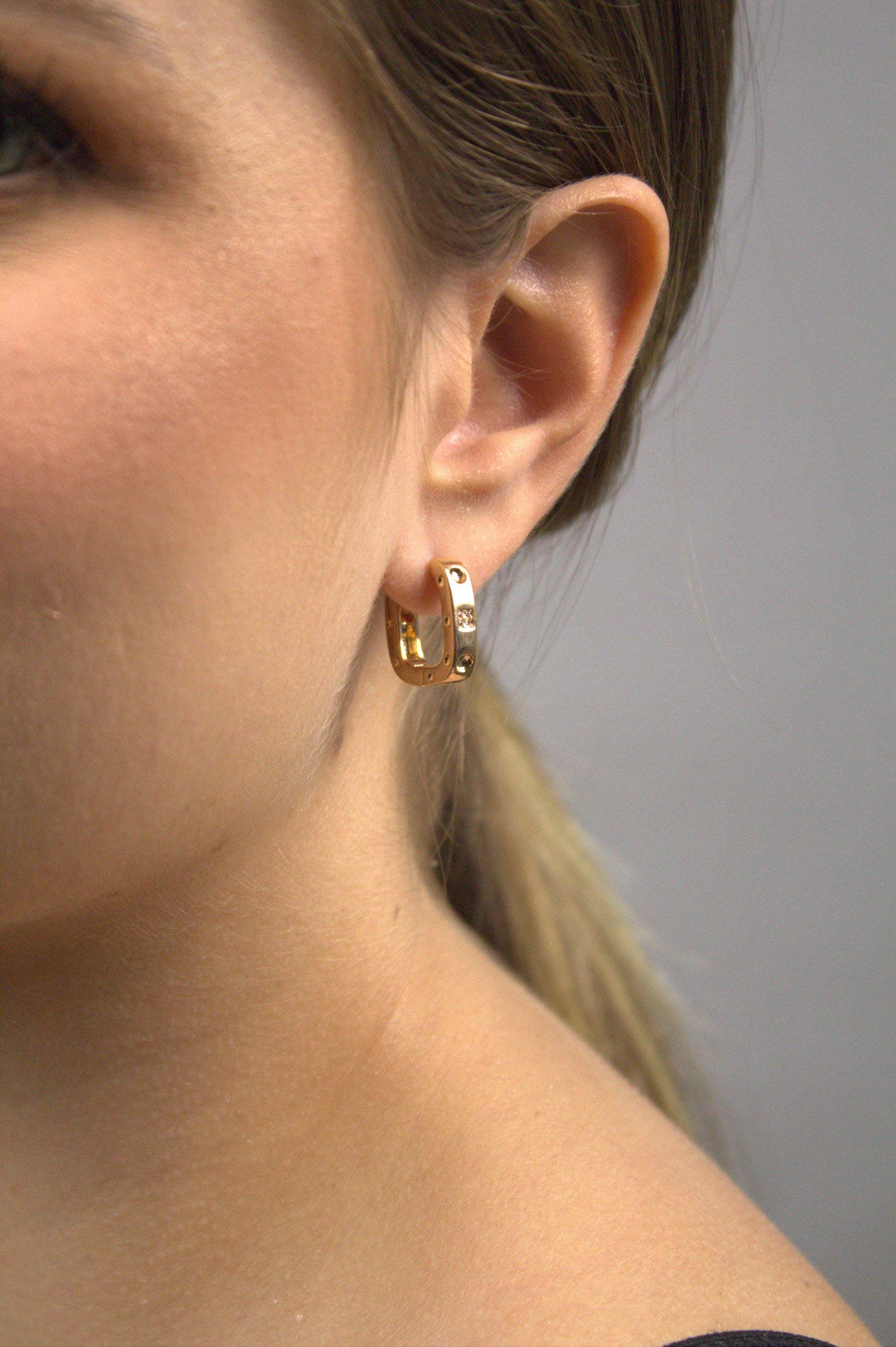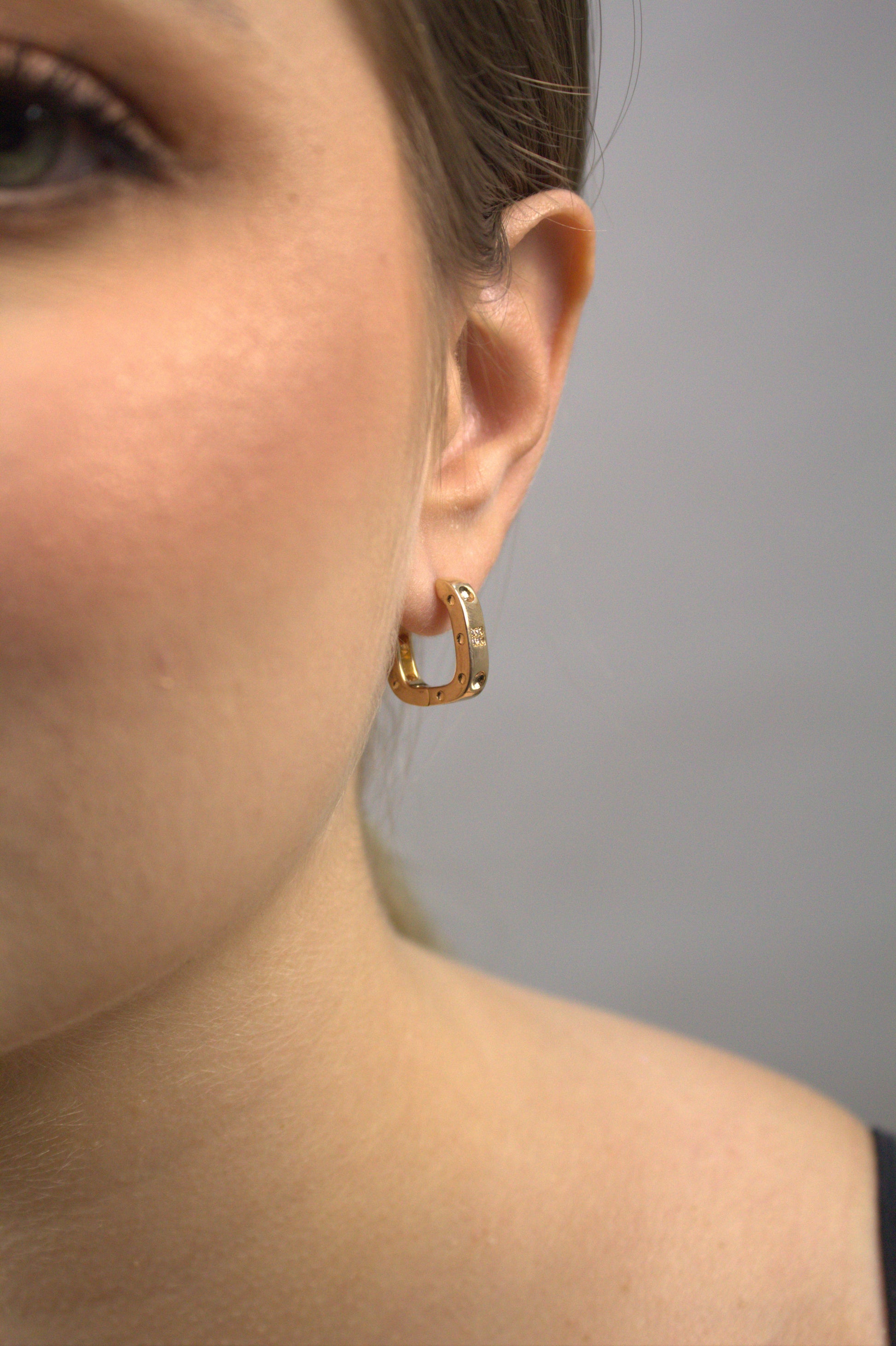 Brinco Folheado a Ouro 18k com Design Quadrado Vazado e Cravejado de Zircônias