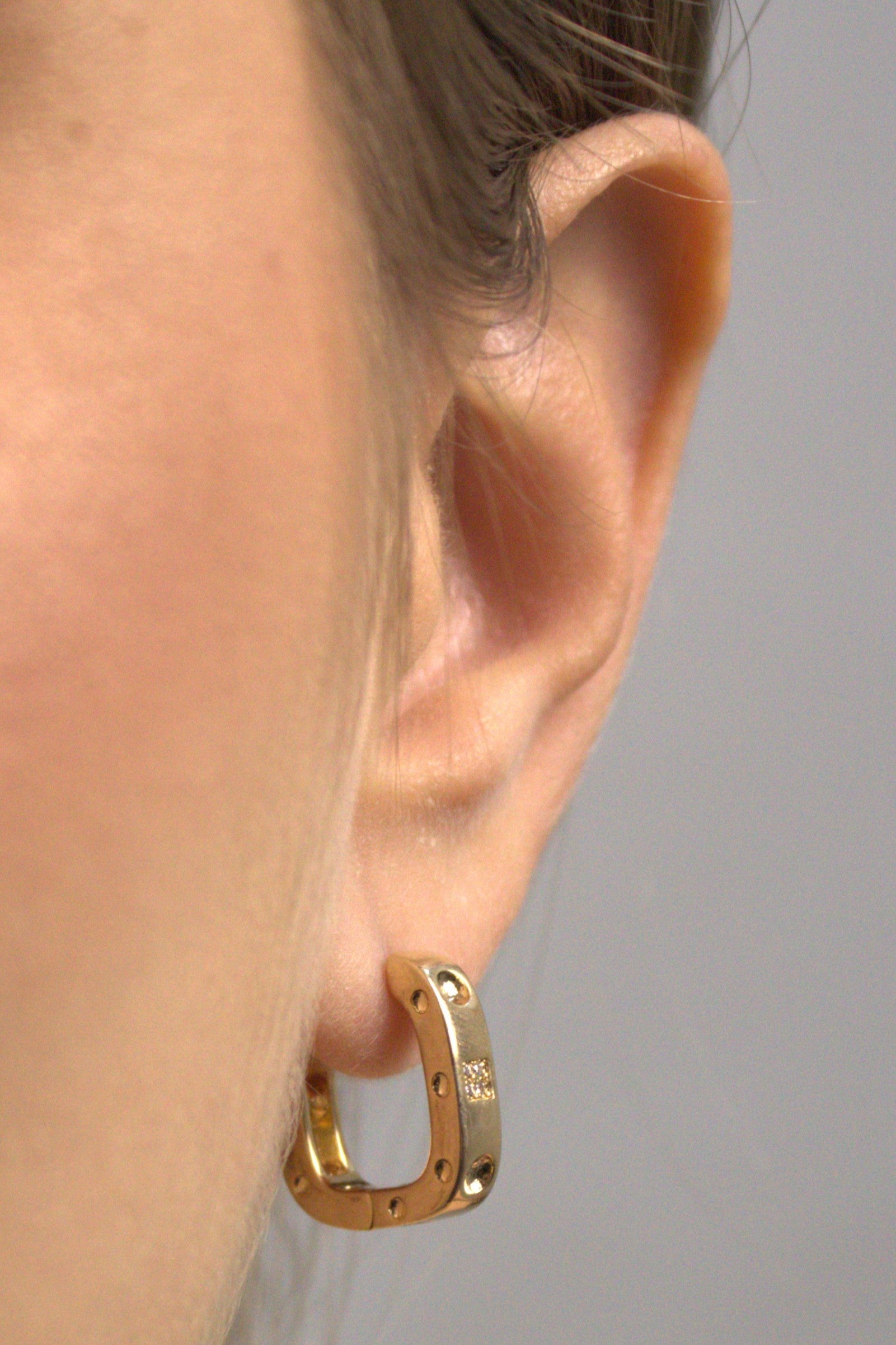 Este brinco folheado a ouro 18k destaca-se pelo design quadrado vazado que confere leveza à peça, enquanto as zircônias cravadas nas extremidades adicionam um brilho sofisticado. A combinação do ouro com as pedras cria um visual elegante e moderno, tornando-o ideal para quem busca um acessório versátil e de alta qualidade para completar o look com charme.