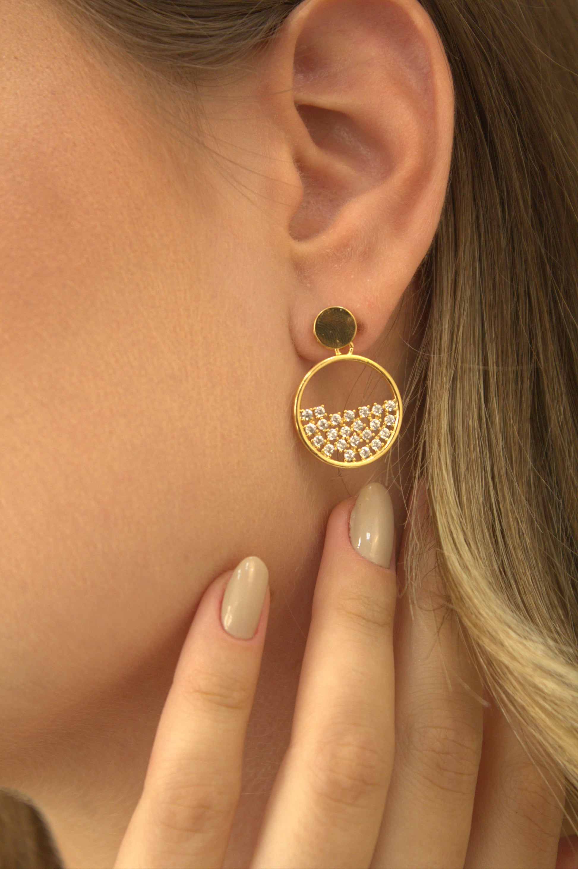 Brinco Folheado a Ouro com Círculo Vazado e Aplicações de Zircônias