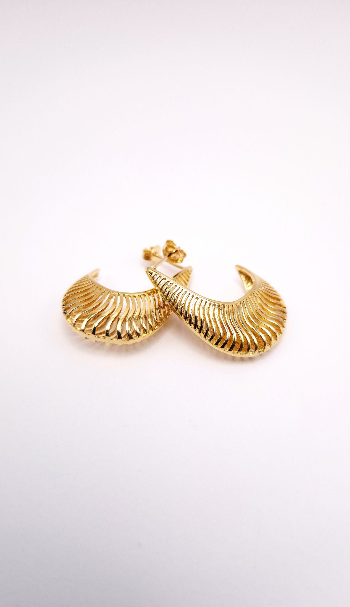 O Brinco Meia Argola Dourada com textura orgânica traz movimento e elegância em cada detalhe. Seu formato curvo, com acabamento vazado e textura marcante, garante destaque imediato ao visual.