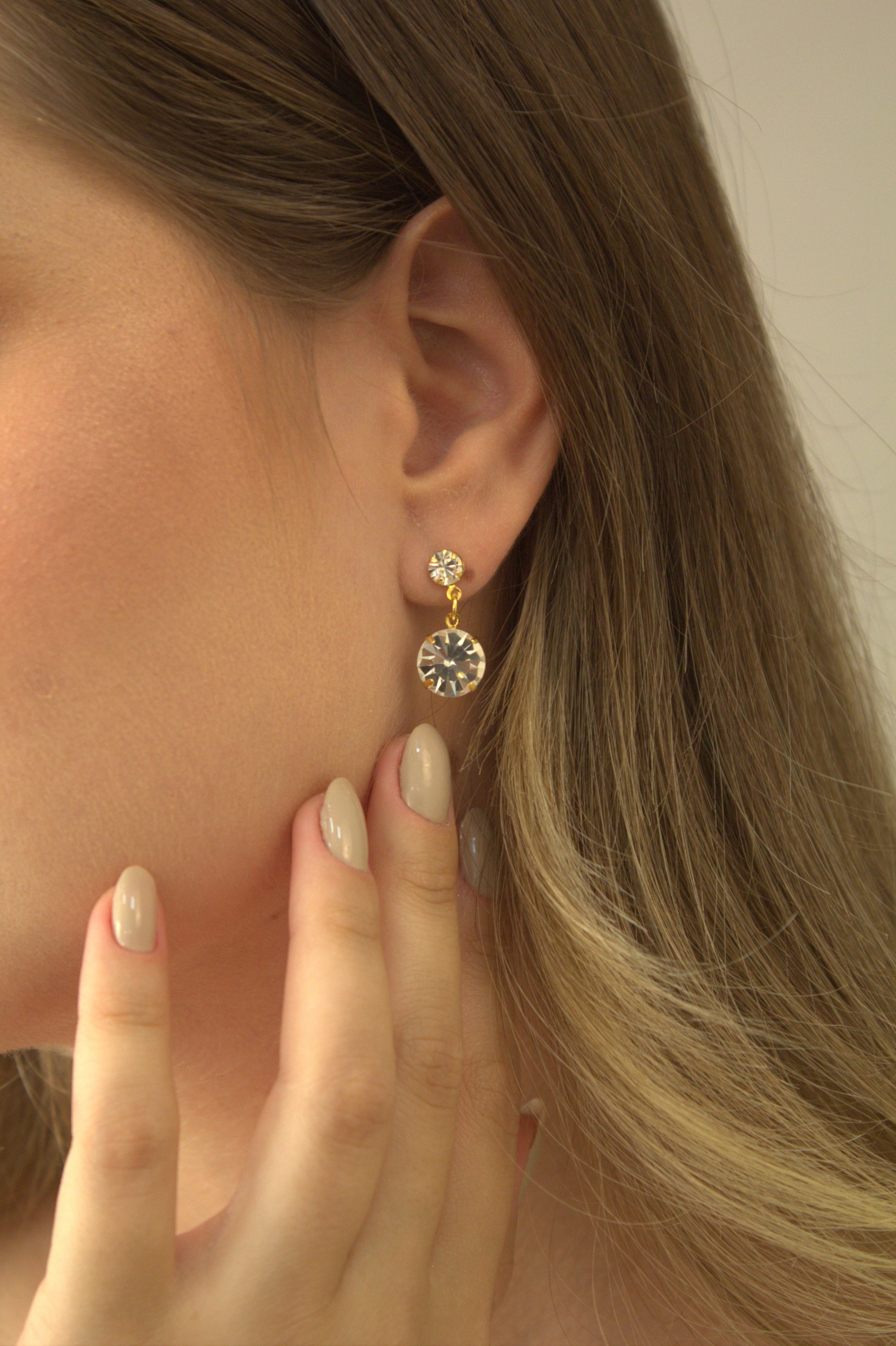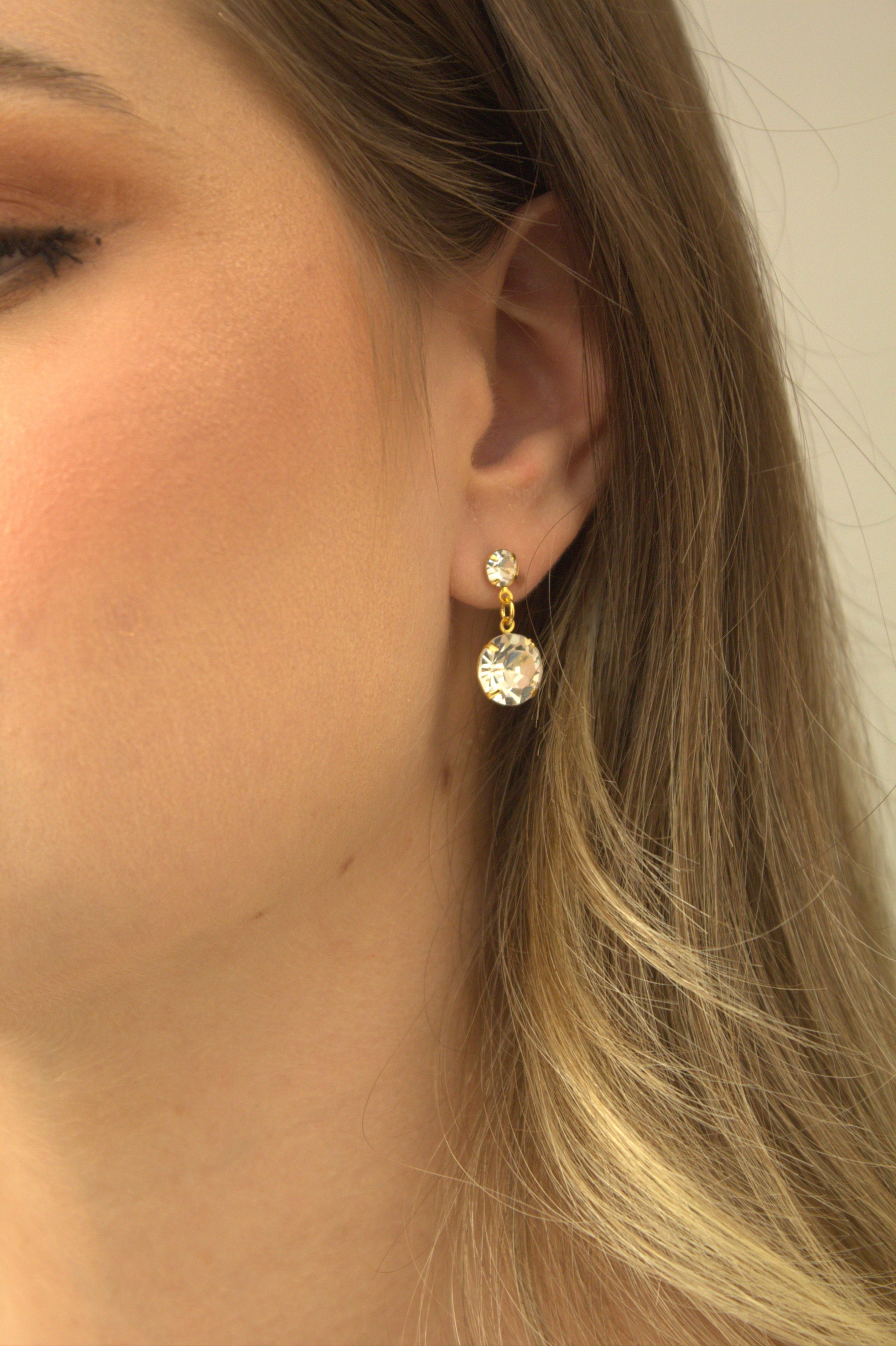 Brinco Pendurado com Pedra Cristal e Base Dourada